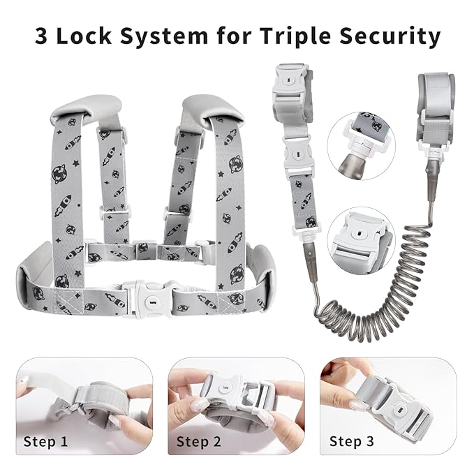 - Keep Security:The anti-lost link is made of stainless steel wire and PU material, strong and durable. The key-lock mechanism helps prevent accidental opening. Keep your child comfortably close while giving them freedom to explore.