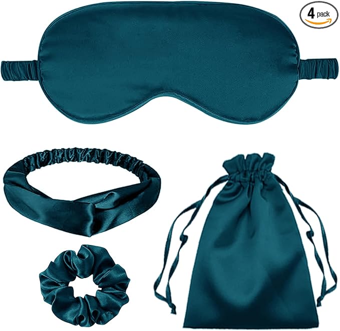 - PERFECT COMBINATION: The package contains: 1xsilky satin sleep eye mask, 1xpouch bag, 1xheadband, 1xhair scrunchies=TOTAL 4PCS PER PACK. Lightweights and portable travelling accessories, allowing you for the relaxation and feel refreshed during the travel or the nap.