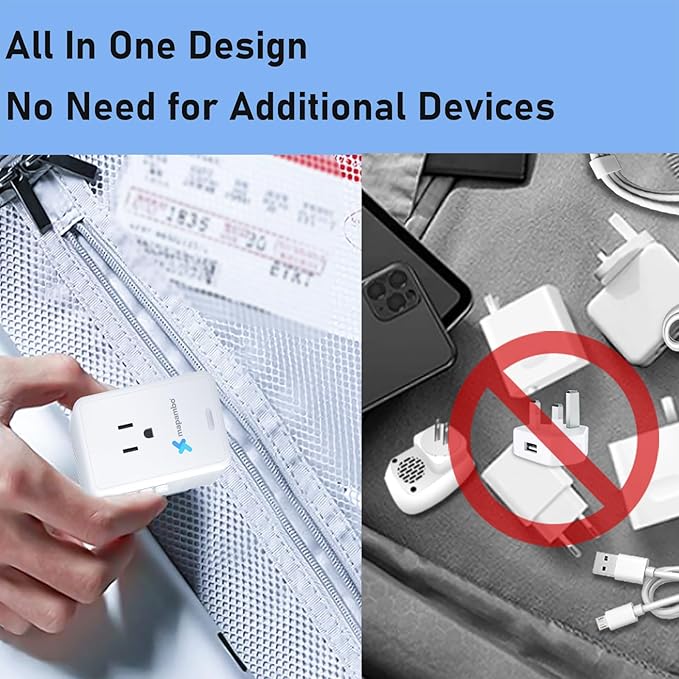 - Smart Fast Charging: The newly upgraded travel converter features a Type-C port with an AI chip that intelligently identifies device charging protocols. Supports full-power fast charging, efficient and worry-free.