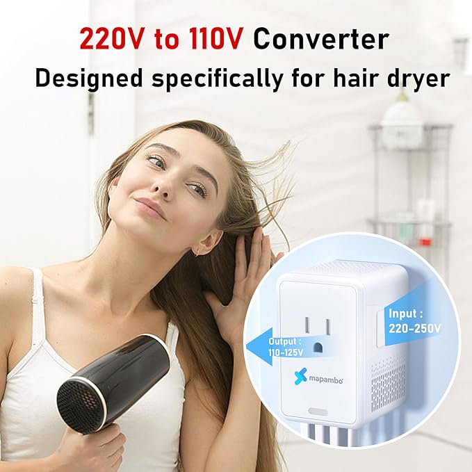 - Converter Designed for Hair Dryers: The 220V to 110V converter with a maximum output of 1400W, it converts voltage(220-250V,50/60Hz) to US voltage (110V,60Hz). Perfect for hair dryers, laptops, phones, cameras, kettles, and more—ensuring you stay connected and in charge, regardless of your global location.
