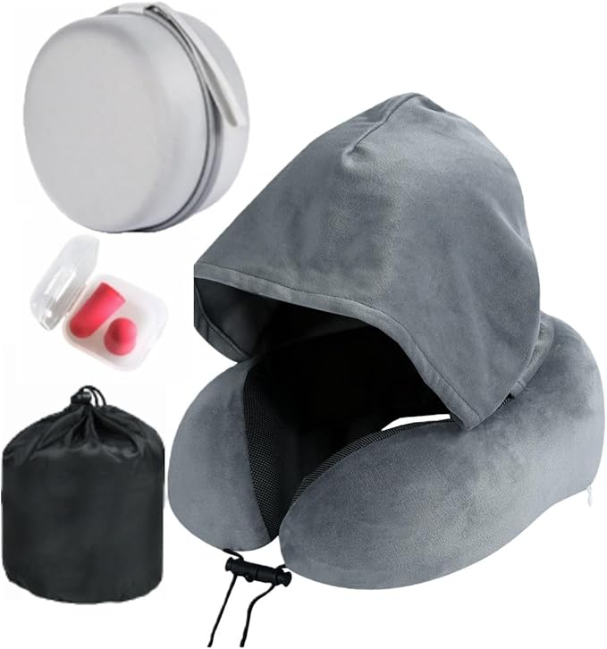 - A travel pillow with a thick, oversized hood provides privacy and comfort for rest during travel.