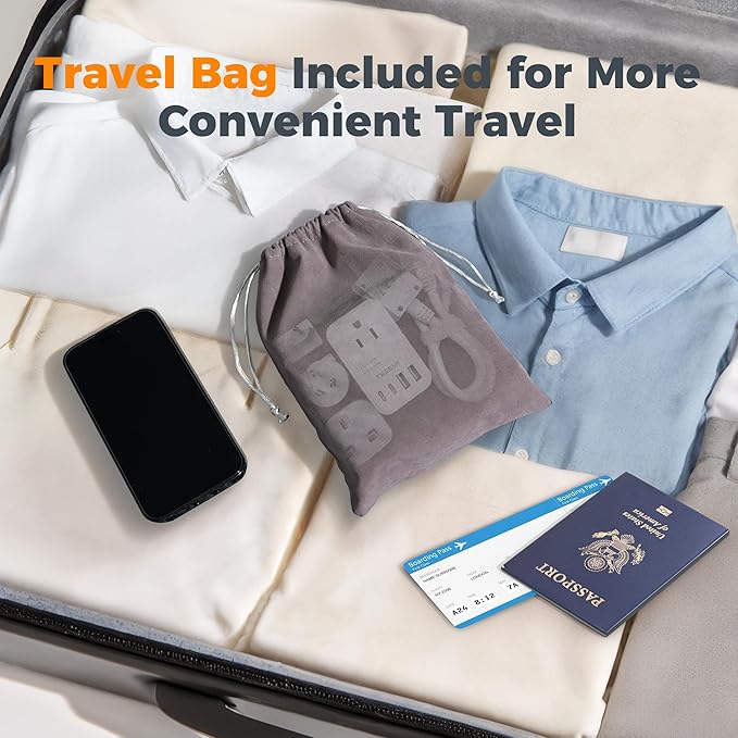 - 6 in 1 Travel Power Converter: This universal travel voltage converter with 2 AC outlets, 2 USB C (3A Per Port), 2 USB A (2.4A Per Port), total output 17W Max; Charge 6 devices simultaneously, suitable for hair dryers, curling irons, laptops, cameras, etc