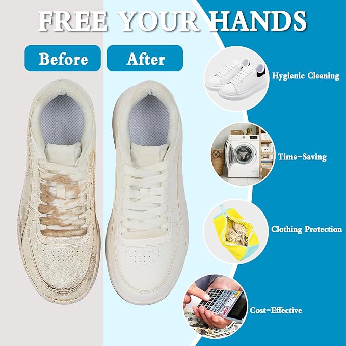 - 【All-in-One Shoe Care Solution】This shoe washing machine bag is your ultimate tool for effortless shoe maintenance. Perfect for sneakers, running shoes, sandals, canvas shoes, and even kids' footwear, it delivers a deep, thorough clean while shielding your shoes from the harsh friction of the washing machine.