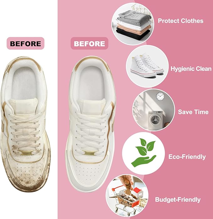 - 【360° Deep Cleaning, No Need to Scrub】 In shoe bag, thousands of soft chenille microfibers are like soft brushes, wrapping every contour of the shoes. During the machine cycle, they effectively remove dirt, soil, and stains, reaching areas that ordinary brushes cannot reach.