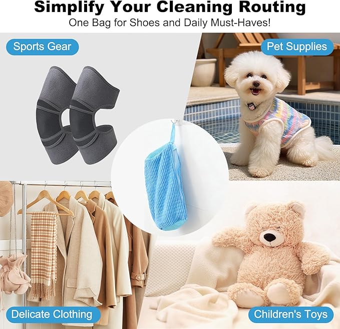 - 【360° Deep Cleaning, No Need to Scrub】 In Shoe Bag, thousands of soft chenille microfibers are like soft brushes, wrapping every contour of the shoes. During the machine cycle, they effectively remove dirt, soil, and stains, reaching areas that ordinary brushes cannot reach.