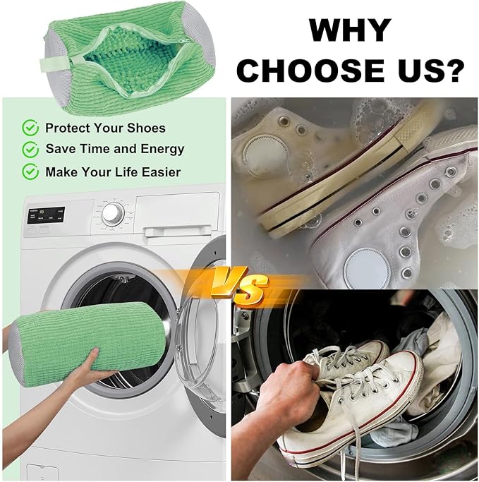 - 【360° Deep Cleaning, No Need to Scrub】 In shoe bag, thousands of soft chenille microfibers are like soft brushes, wrapping every contour of the shoes. During the machine cycle, they effectively remove dirt, soil, and stains, reaching areas that ordinary brushes cannot reach.