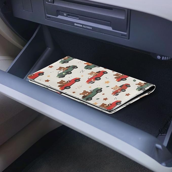 Bolaz Car Bear Car Registration and Insurance Holder Leather Vehicle Document Glove Box Organizer for License Cards Accessories