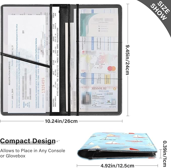 - 【Large Capacity】This car document holders has 6 clear compartments. 1 large pocket for insurance documents + 2 pockets for vehicle registration, 3 small pockets for driver's license, ID cards.