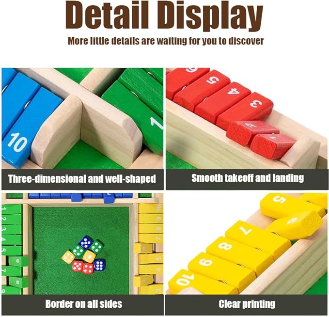 - 【Great Gift Choice】:A thoughtful present for families, teachers, and friends who love interactive fun. This shut the box game offers hours of laughter and learning — perfect for birthdays, holidays, or family game night.