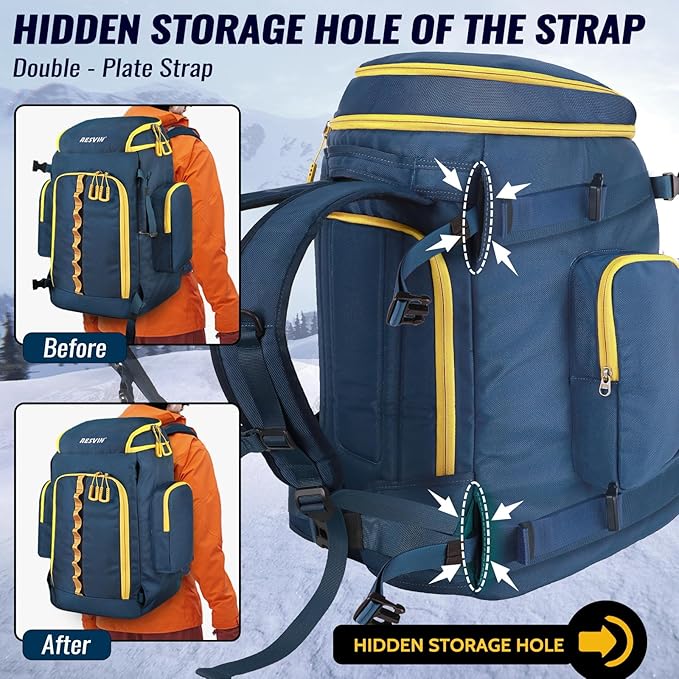 - 【MASSIVE 65L STORAGE CAPACITY】: This brand new design RESVIN ski boot bag possesses 70 liters of storage capacity, it’s big enough to store helmet, jacket, goggles, snowboard, gloves,outerwear and more. If you have a lot of equipment to store and transport, this bag will surely get the job done