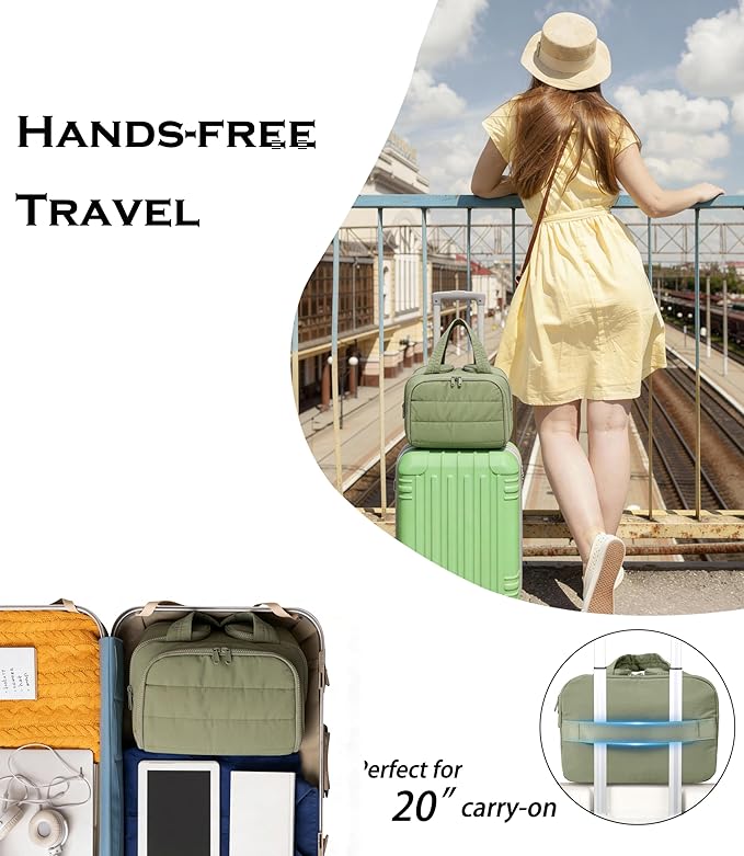 - 【Compact Size, Large Capacity】 11.9'' L x 7.3'' W x 8.3'' H, perfectly sized to fit in a 20-inch suitcase or overnight bag. Back luggage strap slides easily over your suitcase handle for hands-free travel and easy access to travel accessories.