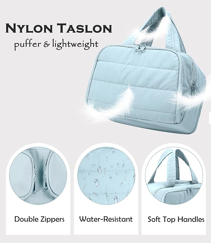 - 【Cloud-Soft and Travel-Light Design】 Crafted from premium Taslan fabric with an ultra-soft, puffy texture that feels as gentle as cotton-cozy and comfortable without adding bulk. The interior features waterproof PVC lining that’s easy to wipe clean, no more worrying about leaks or stains.