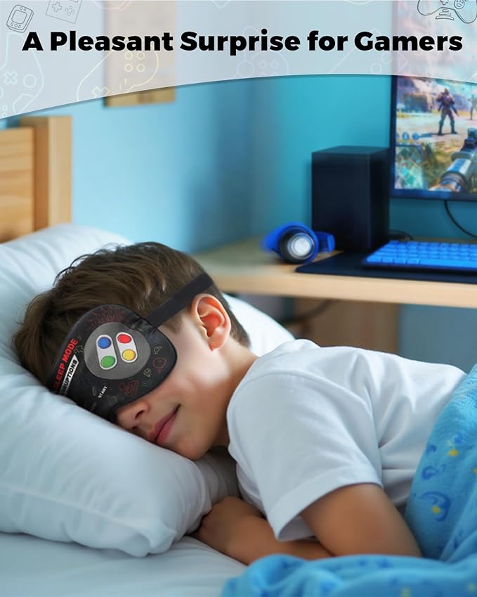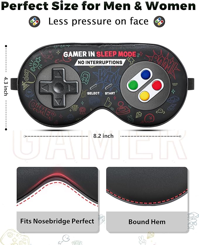 - [Original Gamer Design] Our 2-Pack Game-Themed Pure Silk Eye Masks feature classic gamepad and bold charging icon prints, blending gaming passion into your rest.