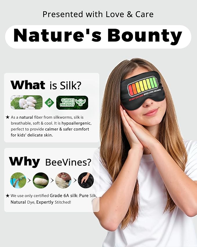 - [Perfect Fit for Both Adults & Teens] BeeVines Silk Sleep Mask features a pain-free adjustable strap that ensures a secure, all-night hold without slipping. Features an adjustable strap, fitting head sizes from 18.5" to 28".