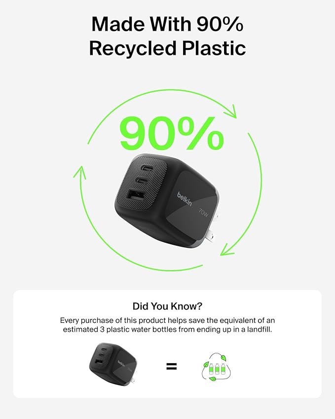 - Included Components : 1 x Belkin 3-Port USB C Charger Block 70W