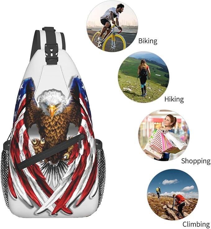Eagle American Flag Sling Bag Multipurpose Crossbody Sling Backpack Travel Cycling Hiking Shoulder Bag For Women Men
