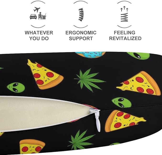 Travel Neck Pillow Memory Foam U Shaped Cushion Alien Donut Pot Leaf Weedleaf Pizza Black, Washable Cover for Airplane Car Office Home Sleeping Pain Relief