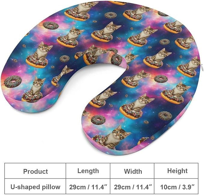 Comfortable Memory Foam Travel Neck Pillow Space Doughnut Donut Cats, Washable Removable Cover, Chin Head Support for Airplane Car Office Pain Relief Sleeping