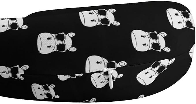 Youth Travel Neck Pillow Soft Memory Foam Chin Support Hippo Hippopotamus Wearing Sunglasses, Washable Cover for Boys Girls Airplane Car School Rest