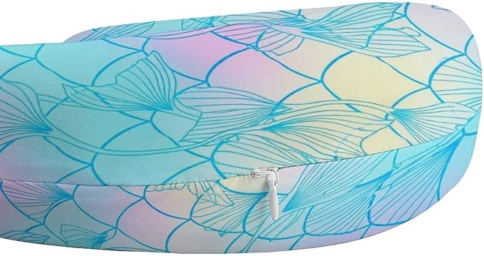 Travel Neck Pillow Memory Foam U Shaped Cushion Colourful Fish Scale Magic Mermaid Tail, Washable Cover for Airplane Car Office Home Sleeping Pain Relief
