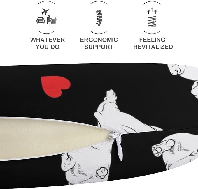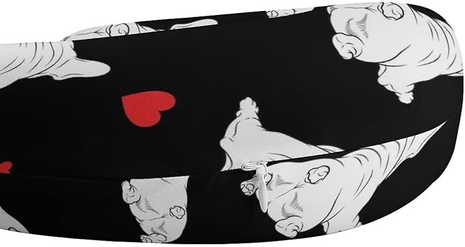 Cute Decorative Travel Neck Pillow Memory Foam Chin Cushion Funny French Bulldog Puppy Dogs, Washable Cover for Women Airplane Car Home Sleeping Rest
