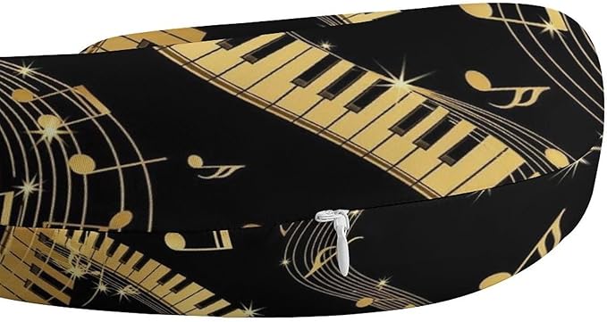Comfortable Memory Foam Travel Neck Pillow Novel Music Note Prints, Washable Removable Cover, Chin Head Support for Airplane Car Office Pain Relief Sleeping