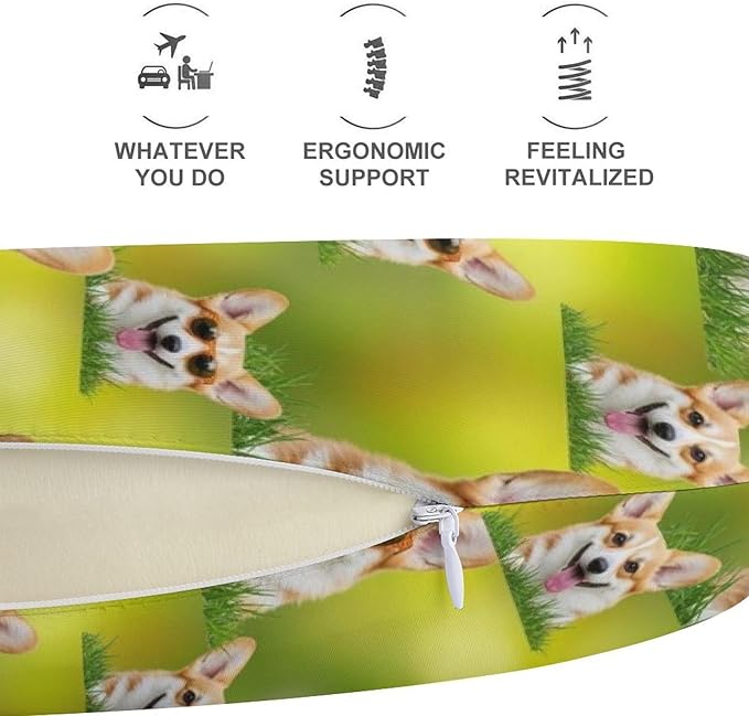 Breathable Memory Foam Travel Pillow U Shaped Chin Head Support Sunglasses Welsh Corgi Puppy, Removable Washable Cover for Airplane Car Office Pain Relief