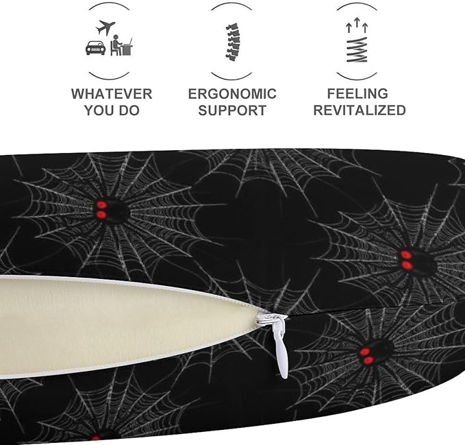 Unisex Travel Neck Pillow Memory Foam U Shaped Cushion Halloween Spiders Web Black, Washable Cover for Men Women Airplane Car Home Rest